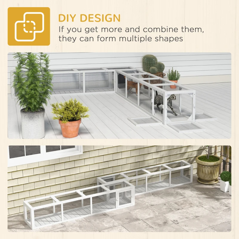 • - Allows an L shape, expansion from the left and right, or even a cat tent or a catio at the end